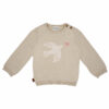Deze schattige gebreide sweater komt uit de collectie Paloma van Frogs and Dogs. De sweater is effen ecru met op de voorzijde een ingebreide vogel met hartje. De boorden zijn gebreid en effen van kleur en op de schouder zitten 2 knoopjes. De collectie is lief, schattig en tegelijkertijd chique collectie. Mooie en zachte winterse kleuren en stofjes voor jouw kleine meid. Ideaal om in de spelen en te stralen.